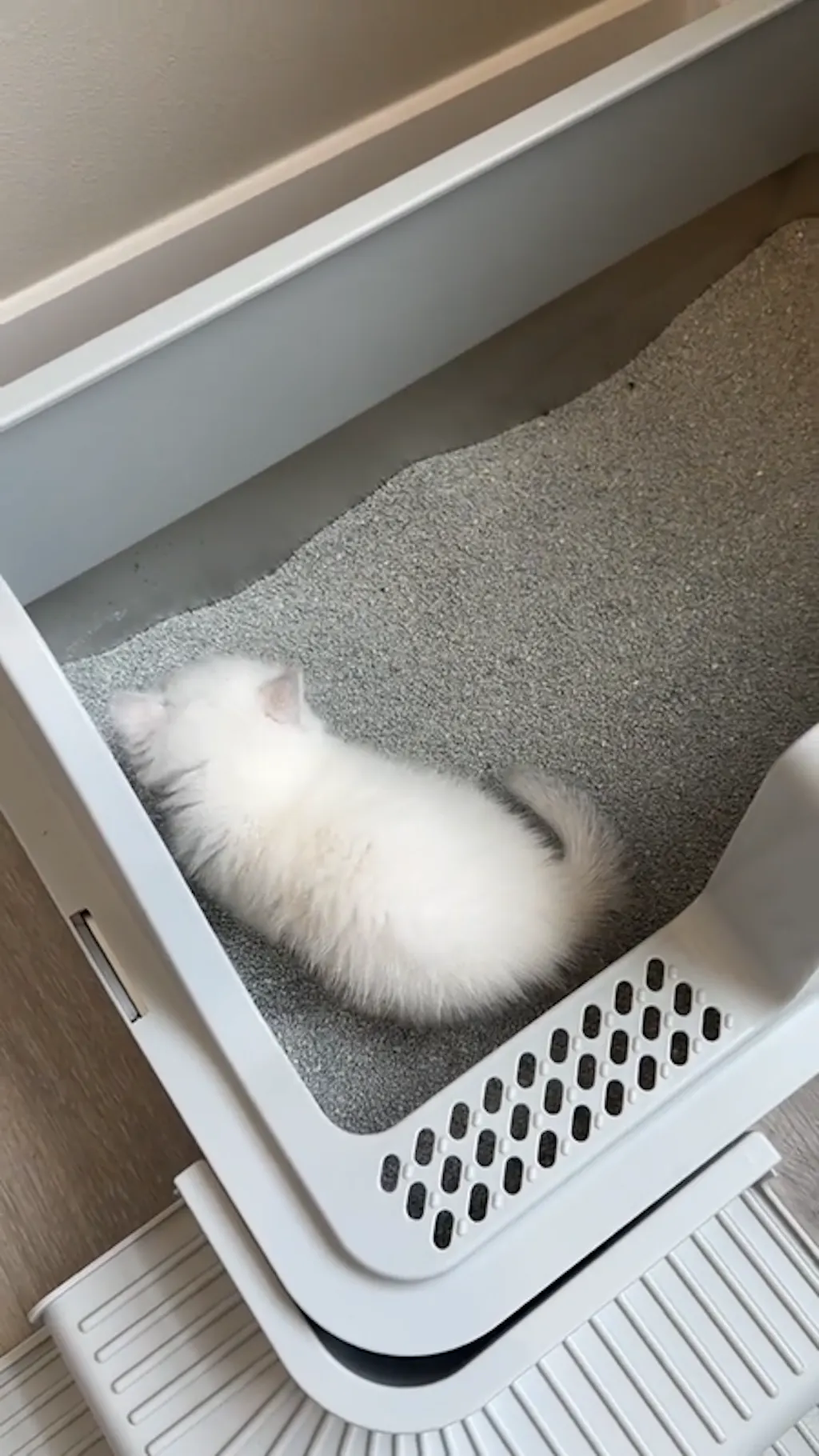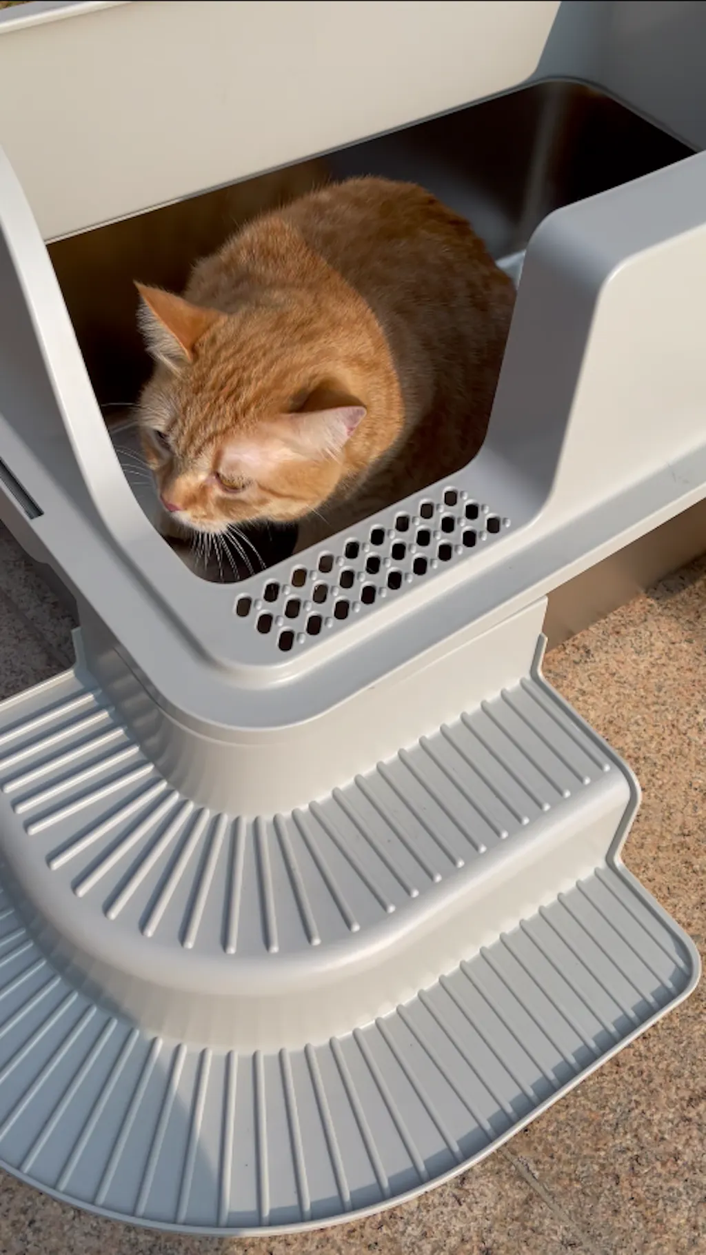 Our unique, patented stair-step entrance is specifically designed to accommodate cats of all ages, especially for short-legged, and weak cats. This innovative design allows for easy, barrier-free access for your feline friends. No difficulty entering the litter box even for one-month-old kitten!
