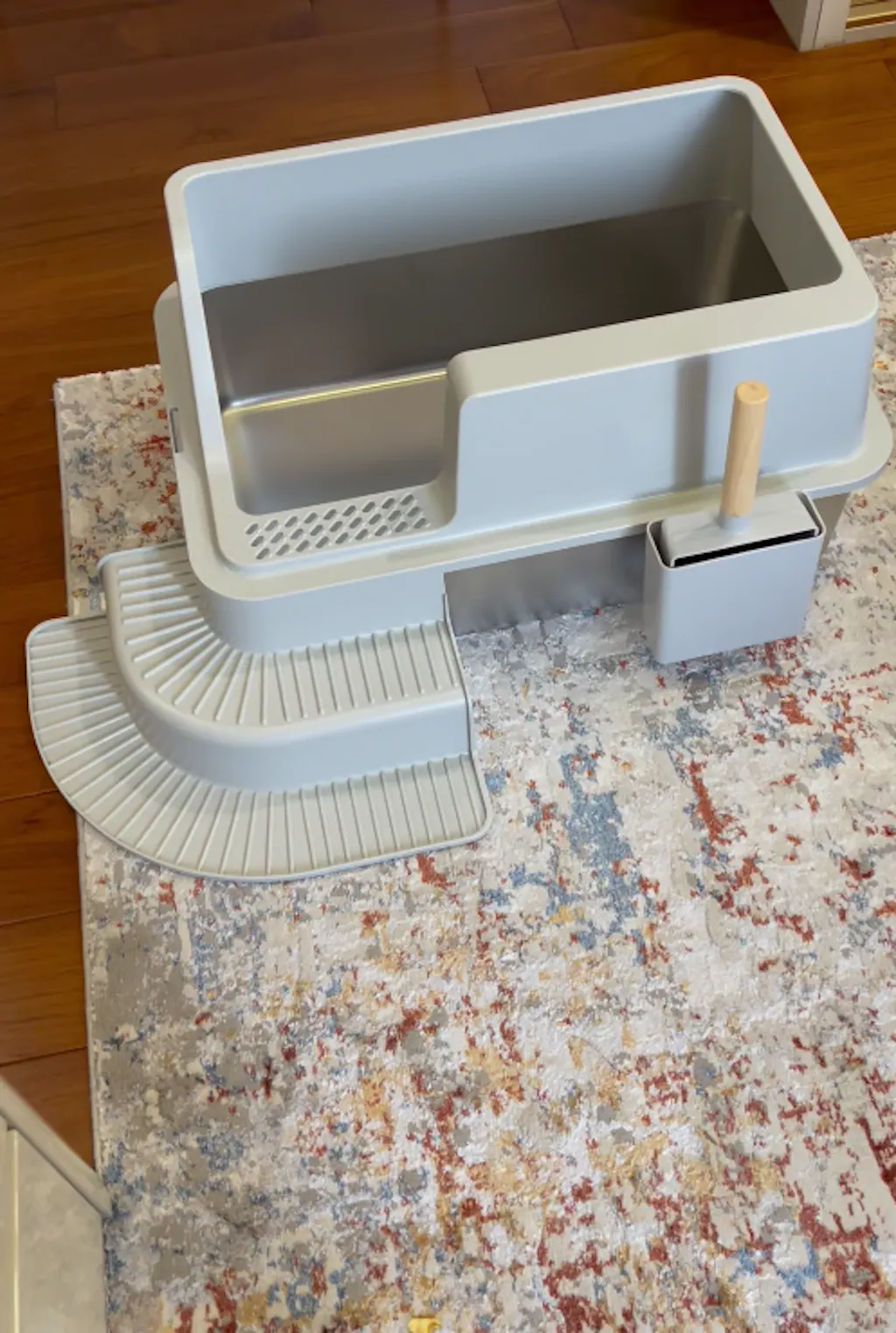 The built-in sifting platform effectively filters litter residue with each step, while the clever pedal system also collects litter for reuse. Double thoughtful design ensures that litter stays where it belongs, significantly minimizing waste and keeping your floors spotless.