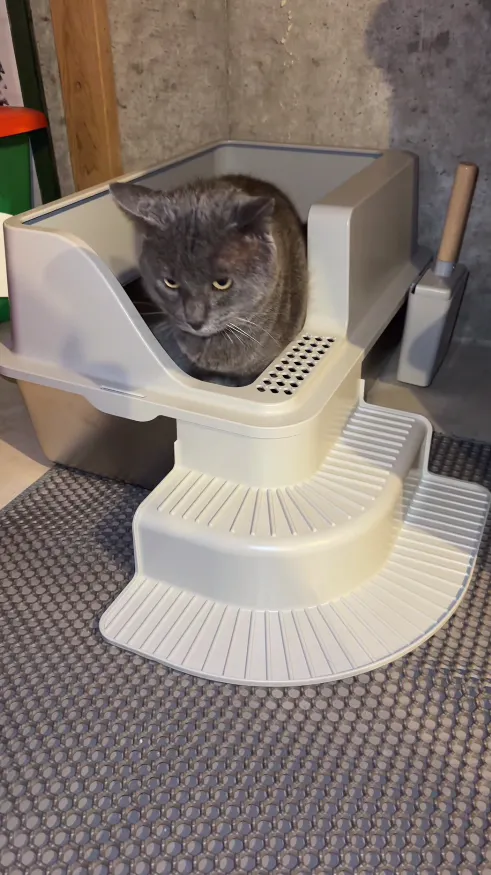 Our unique, patented stair-step entrance is specifically designed to accommodate cats of all ages, especially for short-legged, and weak cats. This innovative design allows for easy, barrier-free access for your feline friends. No difficulty entering the litter box even for one-month-old kitten!