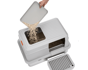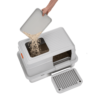 Effortlessly switch to an open litter box by simply pushing and lifting the first layer of the dual lid. This easy conversion allows for convenient scooping and provides your cat with easy access.