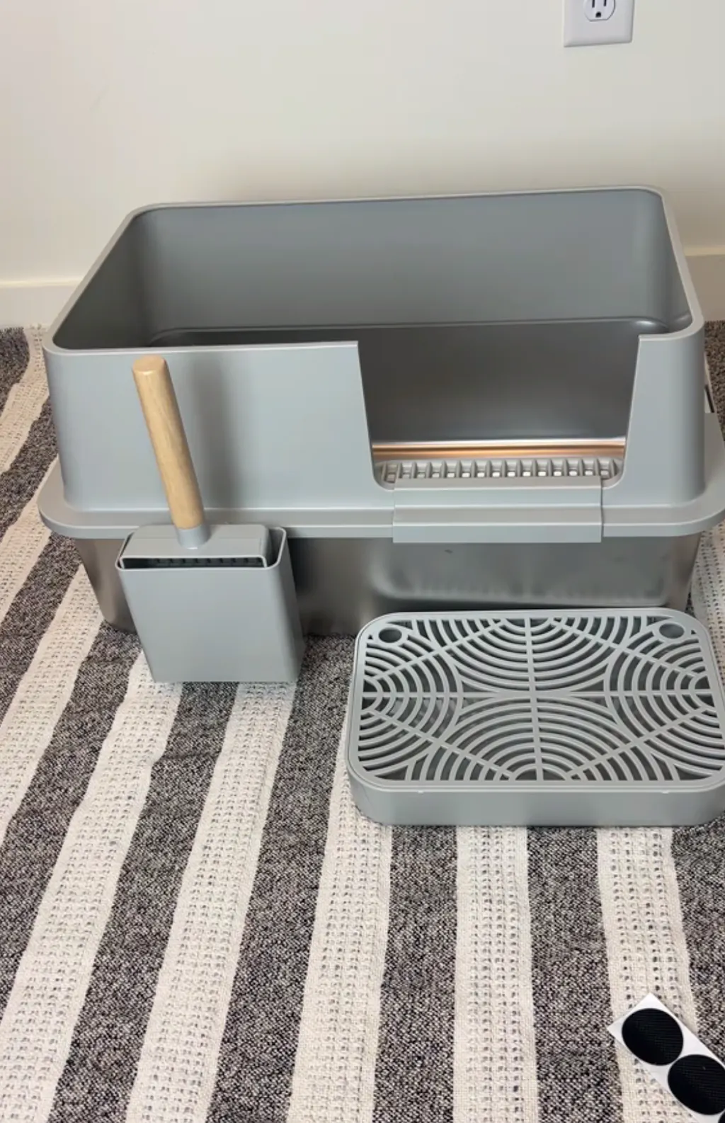 Remove all litter from the box and clean it with a damp cloth or rinse with water. Ensure it is completely dry before refilling with fresh litter. The nonstick stainless steel bottom, which is in contact with excrement, is corrosion-resistant and has no dead corners. Easily handle any buildup or residue with just one wash!