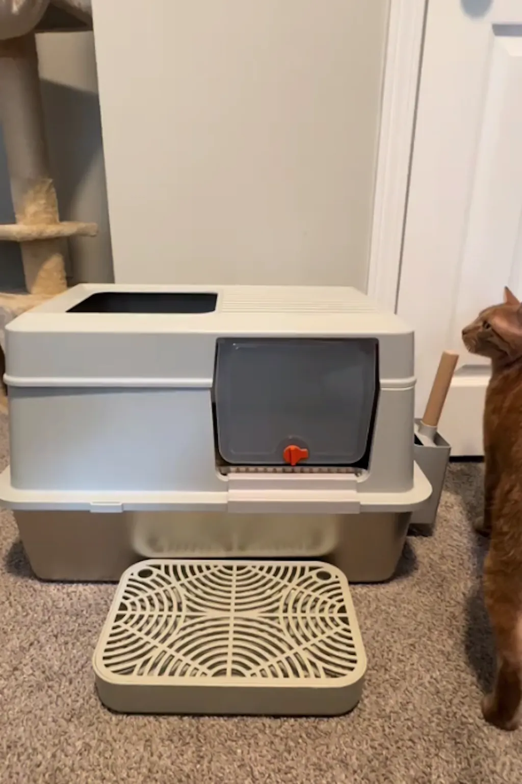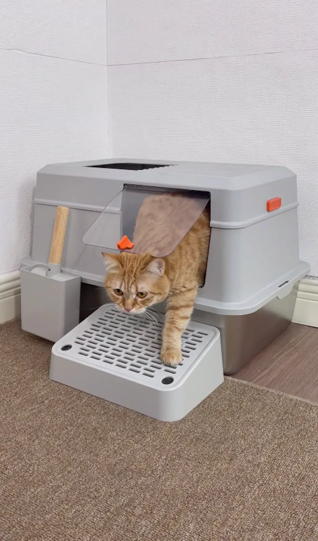 • Convertible Design: Allows for use as a fully enclosed litter box with dual entries (side and top), or easily converted to an open litter box by removing the first lid.