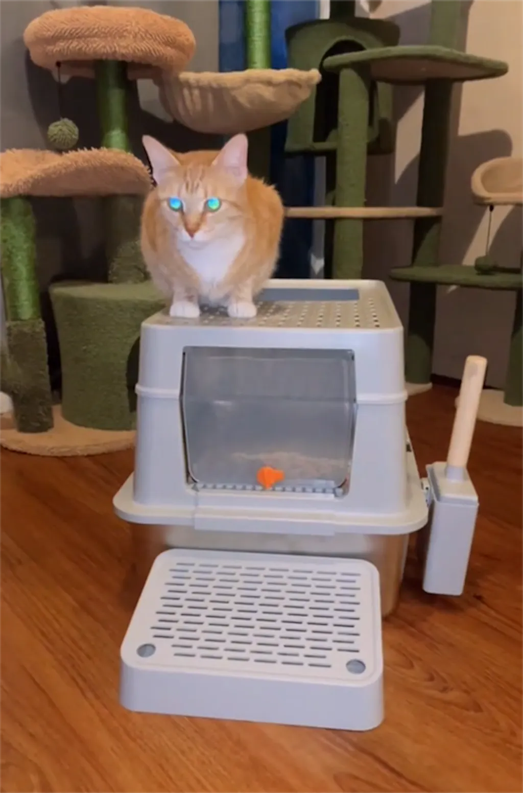 Discover our versatile stainless steel cat litter box with a removable enclosure for enclosed or open use. Featuring dual entries, triple litter recycling systems, and an innovative flap door with three access modes. Perfect for larger breeds and multi-cat households, ensuring minimal litter scatter, easy cleaning, and unmatched convenience.