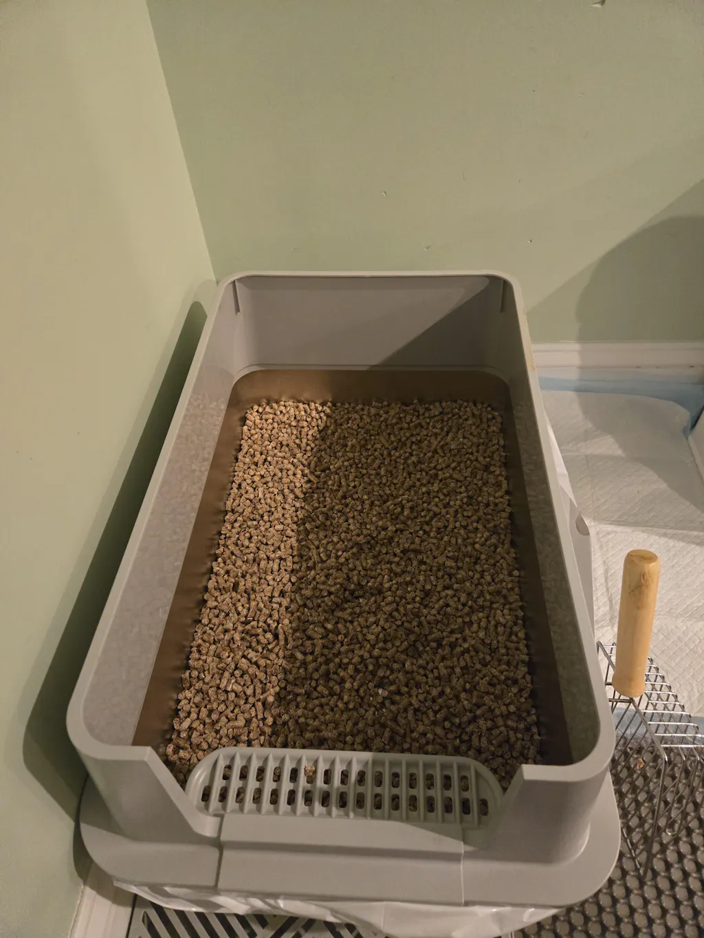 Remove all litter from the box and clean it with a damp cloth or rinse with water. Ensure it is completely dry before refilling with fresh litter. The nonstick stainless steel bottom, which is in contact with excrement, is corrosion-resistant and has no dead corners. Easily handle any buildup or residue with just one wash!