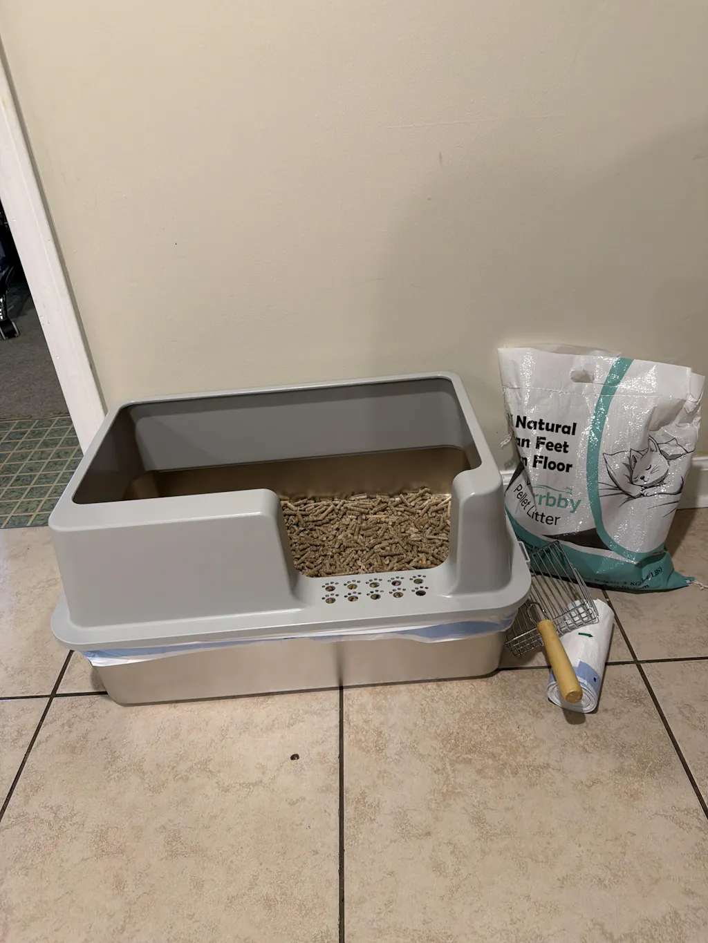 2. Add a few cups of litter from the old litter box to help your cats feel more familiar with Furrbby.