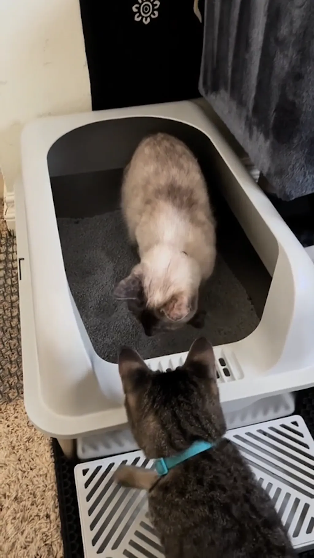 2. Add a few cups of litter from the old litter box to help your cats feel more familiar with Furrbby.