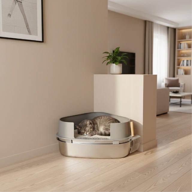 Corners are some of the most underused spaces in a home — yet most litter boxes aren’t designed to fit them. Standard square boxes are forced into open areas, wasting floor space and disrupting the flow of the room instead of blending into it.