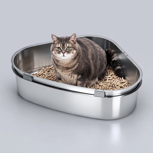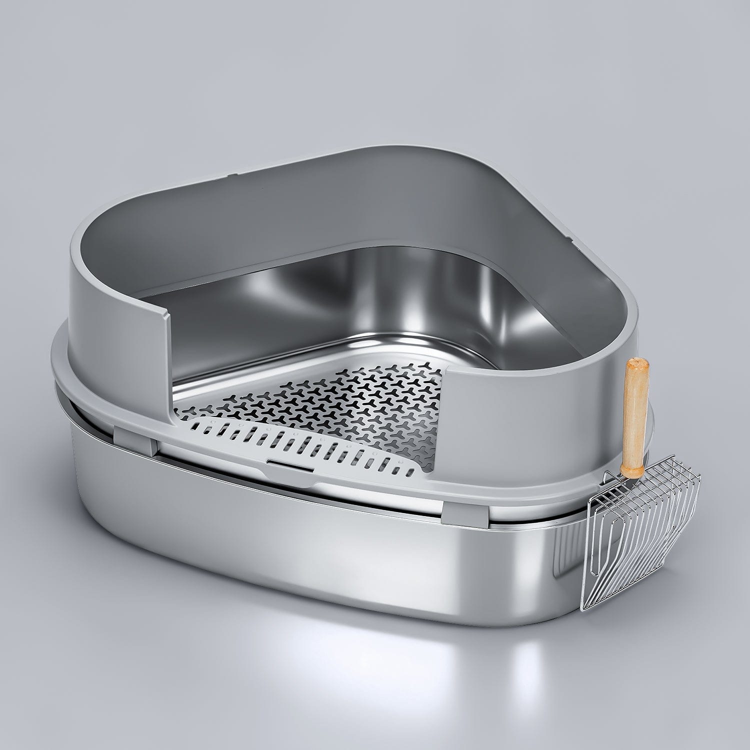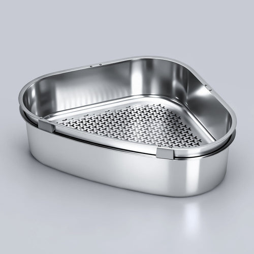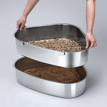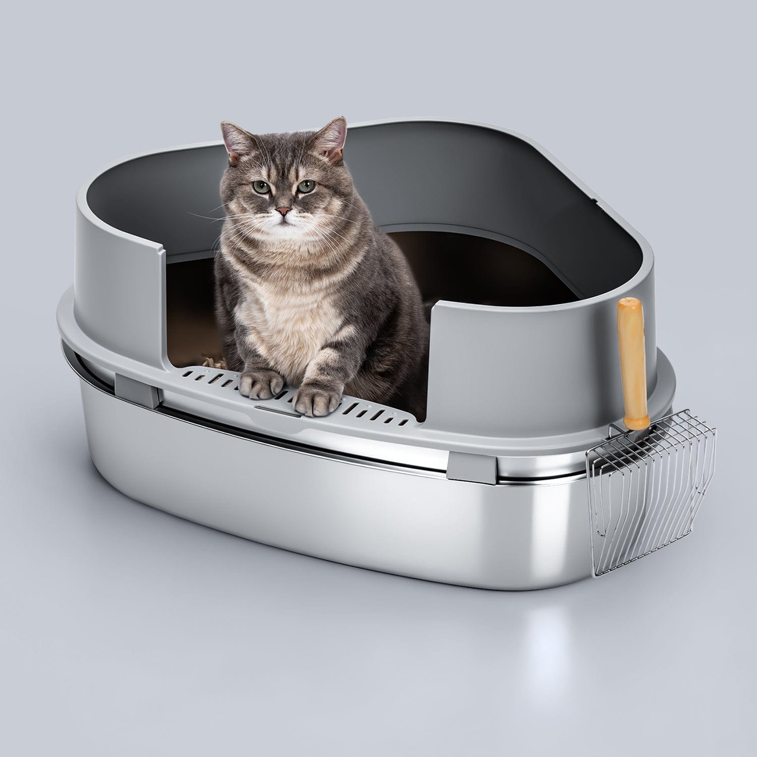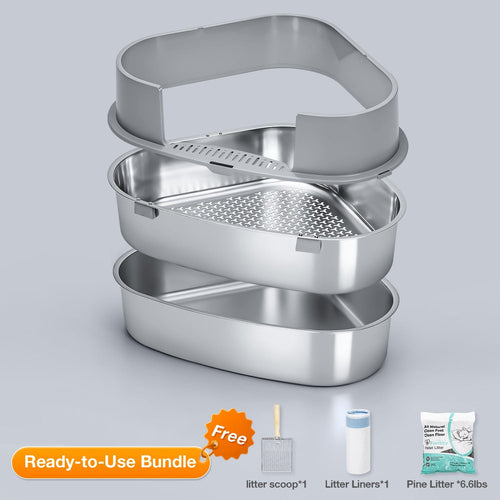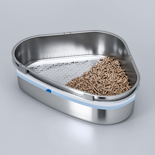 This stainless steel litter box has perfectly sized screens to sift dissolved litter easily, plus a bottom liner for quick, clean disposal.