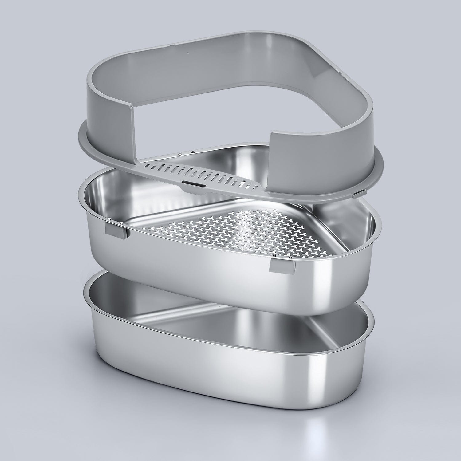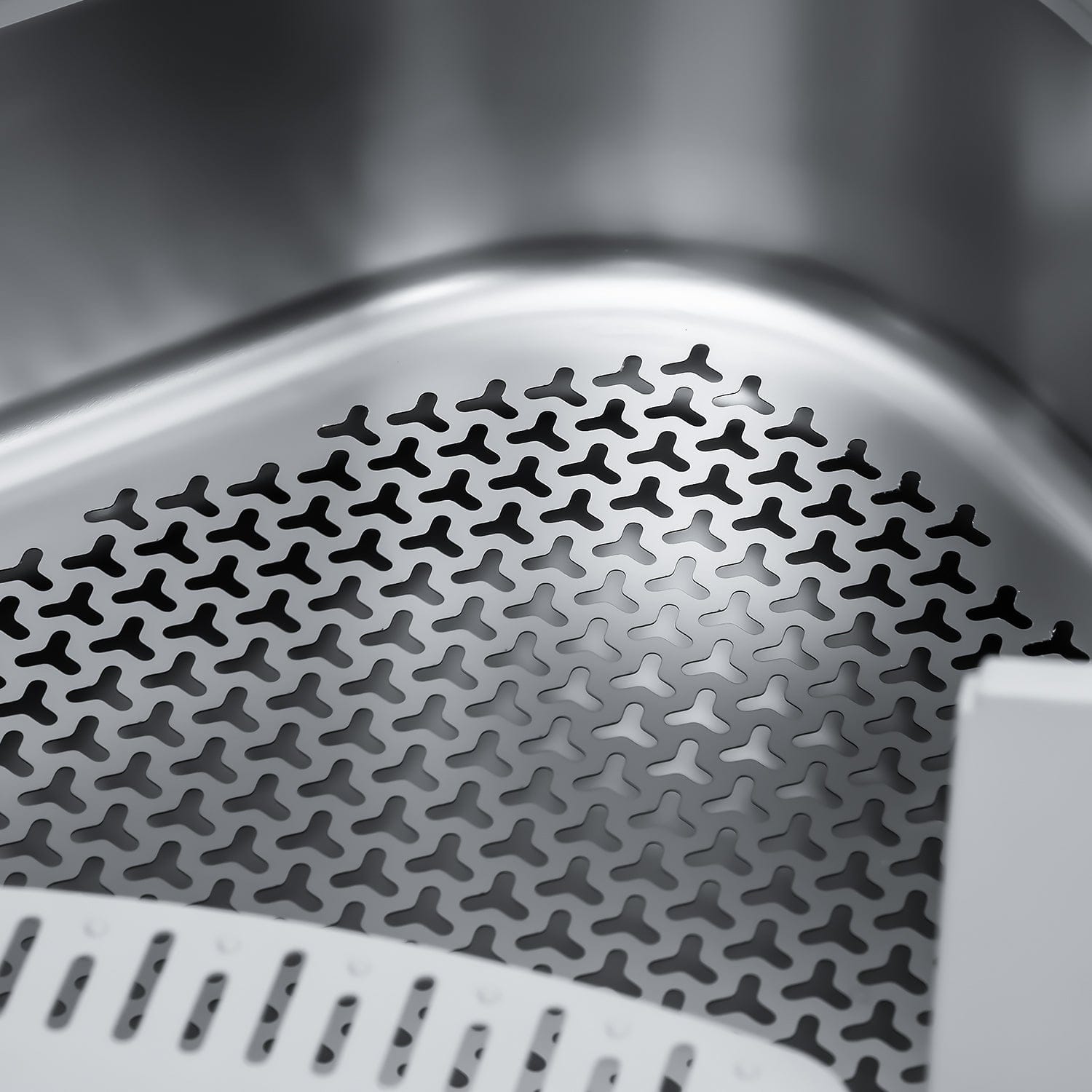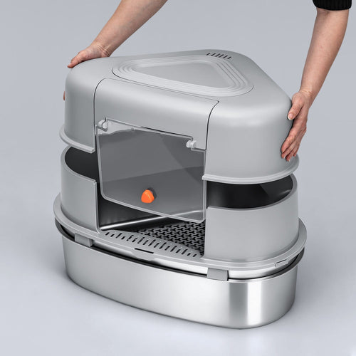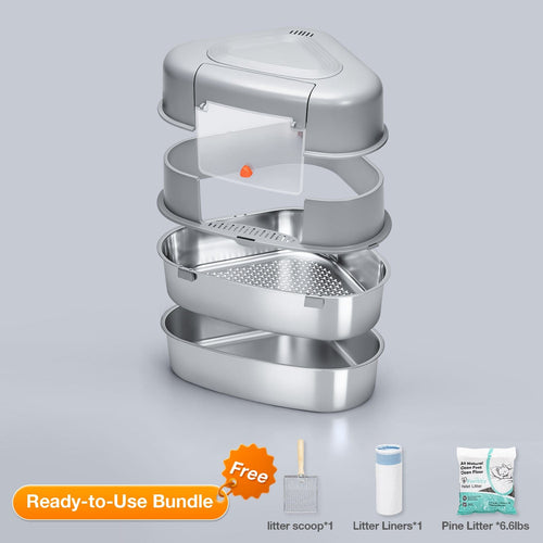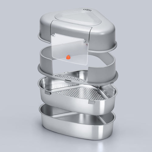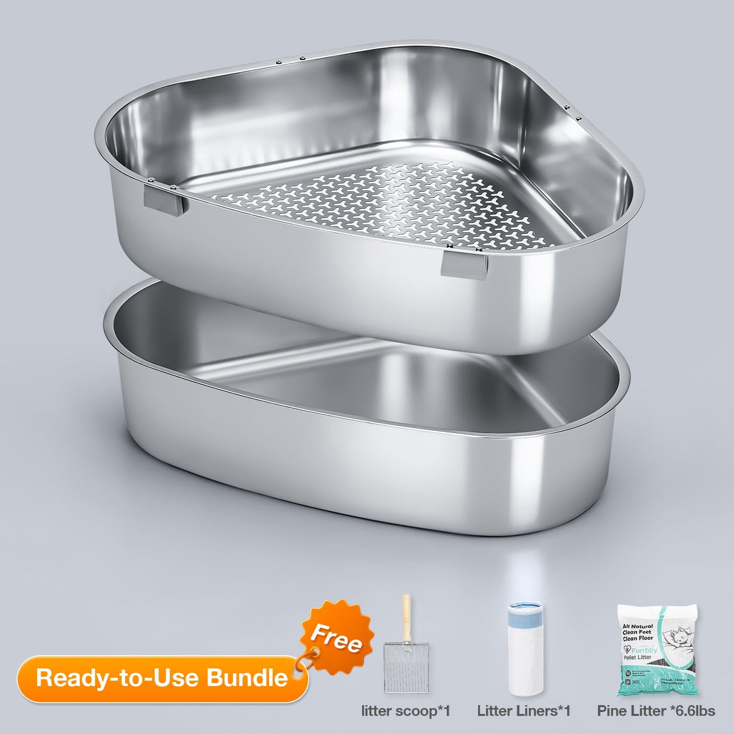 This stainless steel litter box has perfectly sized screens to sift dissolved litter easily, plus a bottom liner for quick, clean disposal.