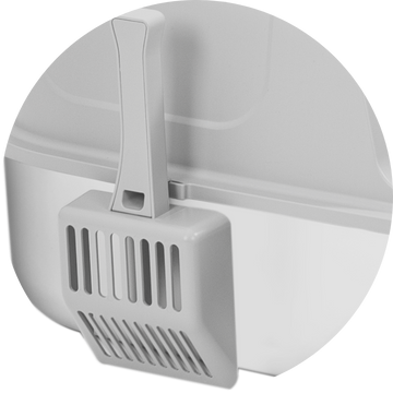 Our litter box comes with a durable scoop and an entry stair, making it a fully equipped solution for your litter management needs. The sleek design ensures easy cleaning and prevents litter from getting trapped, enabling a cleaner environment for you and your cat.