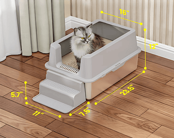 Unlike plastic, which can scratch and trap odors, stainless steel resists scratches, repels bacteria, and doesn’t absorb unpleasant smells. A stainless steel litter box ensures a cleaner, healthier experience for you and your cat.