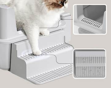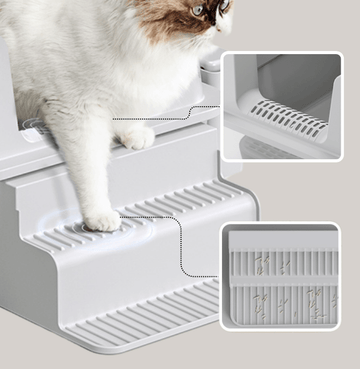 The built-in hollow platform and grid stairs are designed to catch litter from your cat's paws, significantly reducing tracking and waste. The stairs also provide a smooth approach for kittens, senior cats, or short-legged breeds, ensuring all cats can access the box with ease.