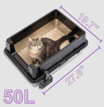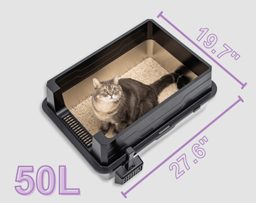 Designed for Maine Coons and other large breeds, this oversized litter box provides ample space for even the biggest cats to move comfortably and naturally. Measuring 27.6”L*19.7” W*12.5”H and holding up to 50 liters litter, it allows an adult large cat to use for 30 days while also perfect for multi-cat households.