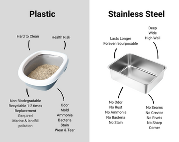 Unlike plastic, which can scratch and trap odors, stainless steel resists scratches, repels bacteria, and doesn’t absorb unpleasant smells. A stainless steel litter box ensures a cleaner, healthier experience for you and your cat.